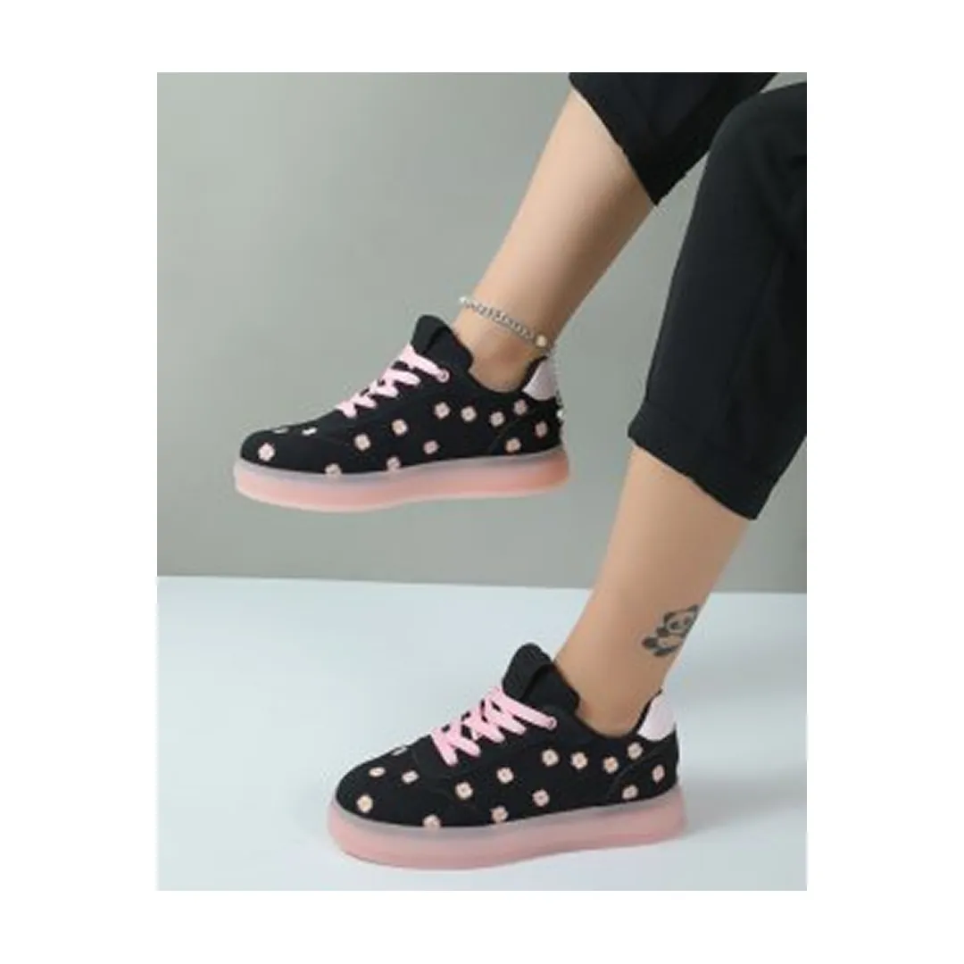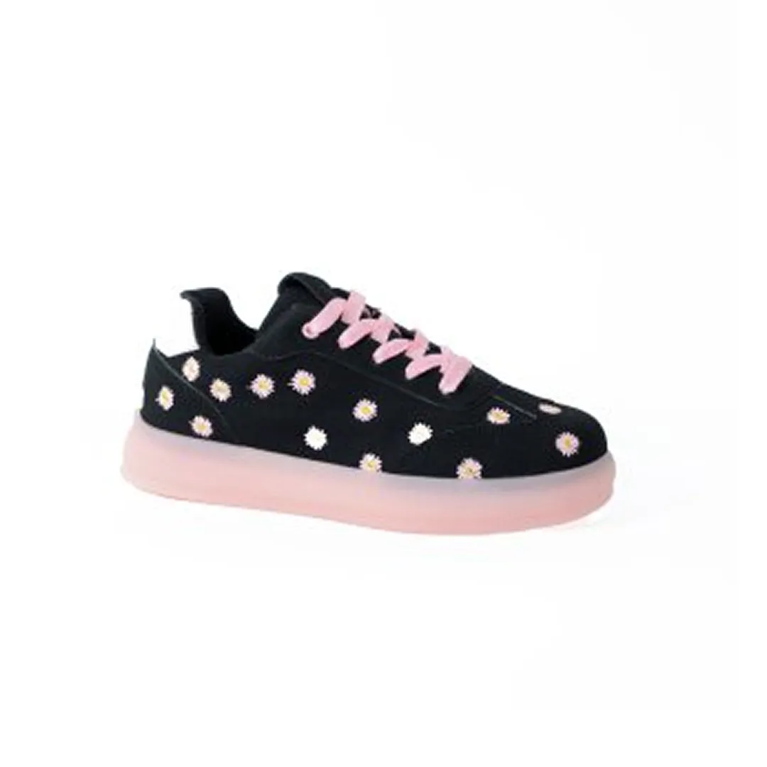 کفش کتونی راحتی زنانه مدل بابونه گلدوزی رنگ مشکی صورتی