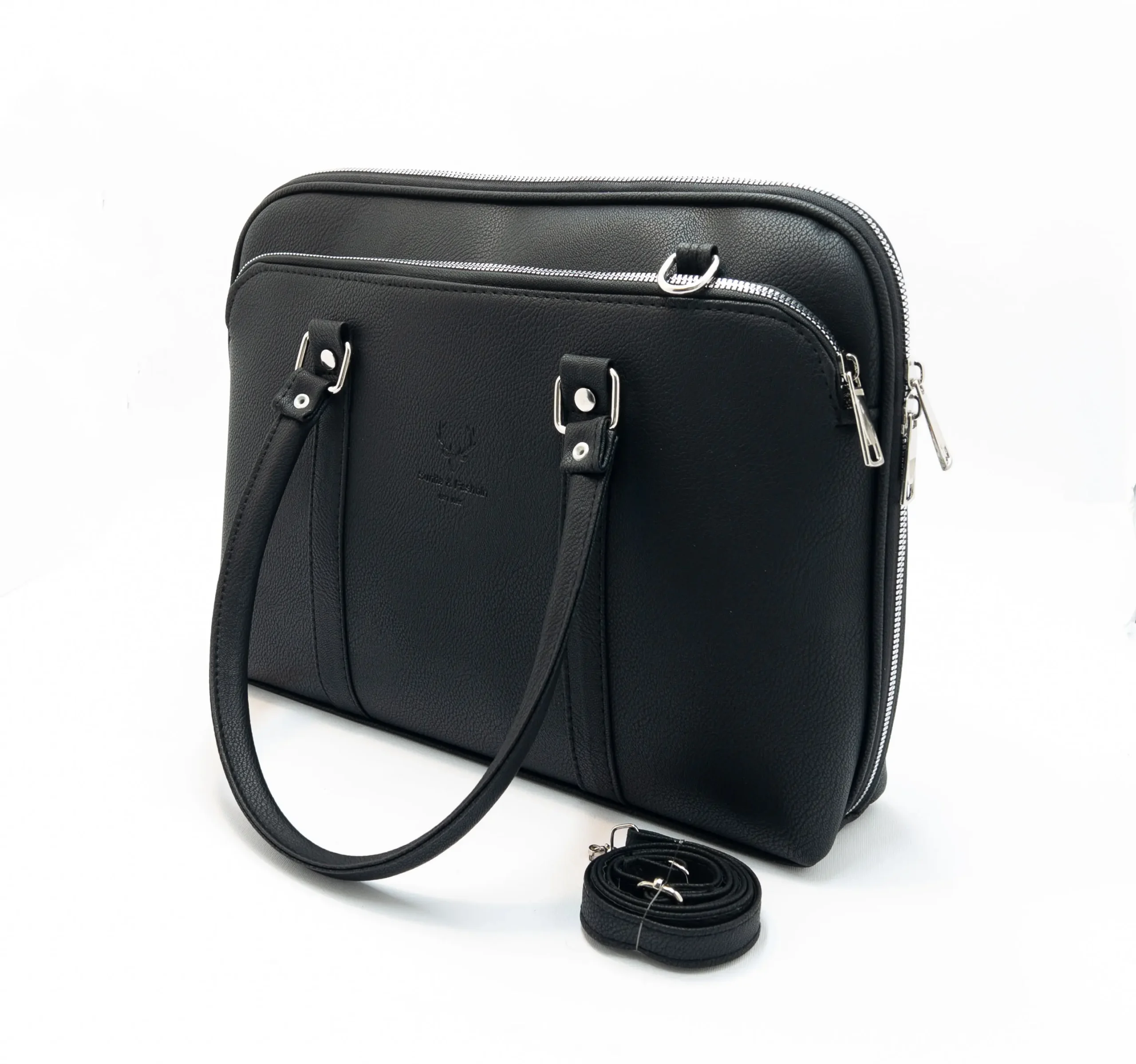 کیف اداری و لپتاپ چرم مصنوعی مشکی است با طراحی ساده، رسمی و شیک دارای زیپ دوبل و جیب داخلی مخصوص لپتاپ و مدارک